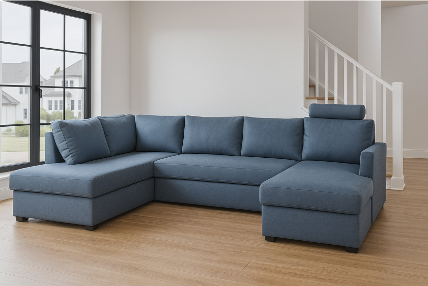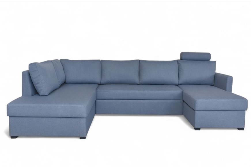 Komfortabel og smart U-sovesofa, med posefjedre. Med magasin i begge sider. BEMÆRK incl. OPBEVARING