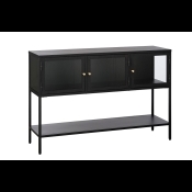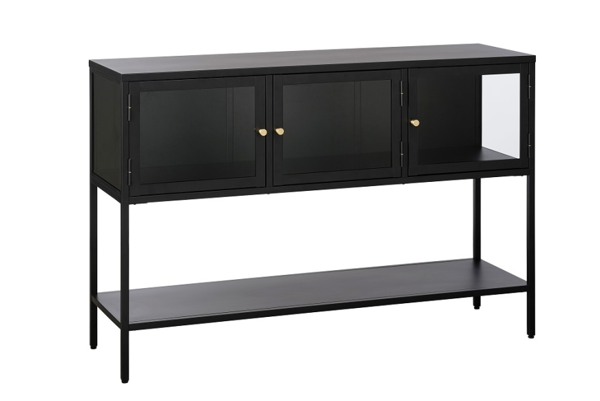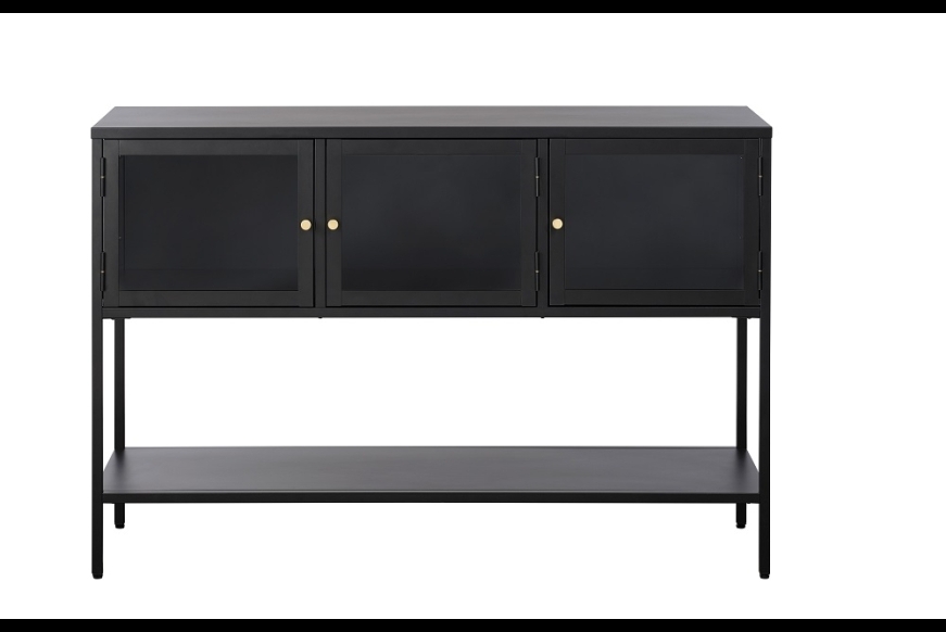 Flot skænk i 3 sektioner med sort metal og glas i front og siderne.