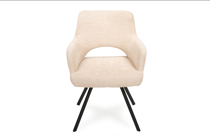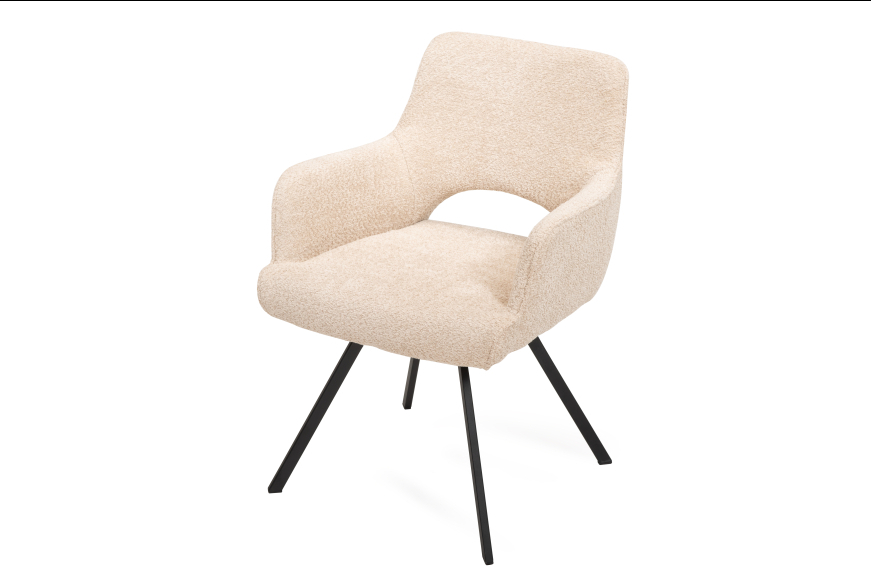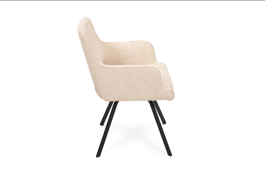 Relax 9022 er en komfortabel spisebordsstol med armlæn. Stolen er polstret med behagelig stof og har sort trædrejestel.