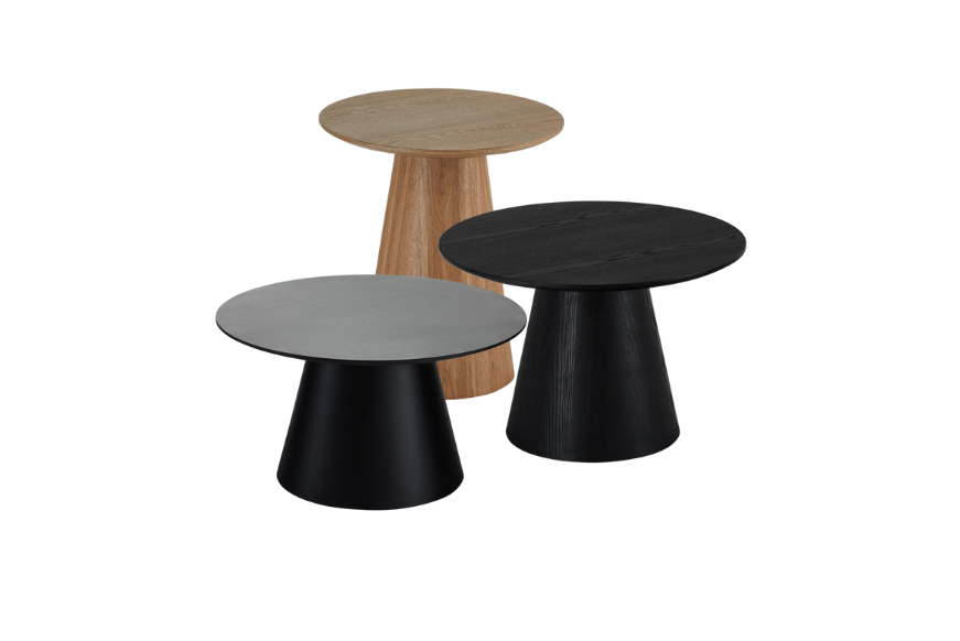 Sofabord i melamin fås også også i sort- eller egefinér.