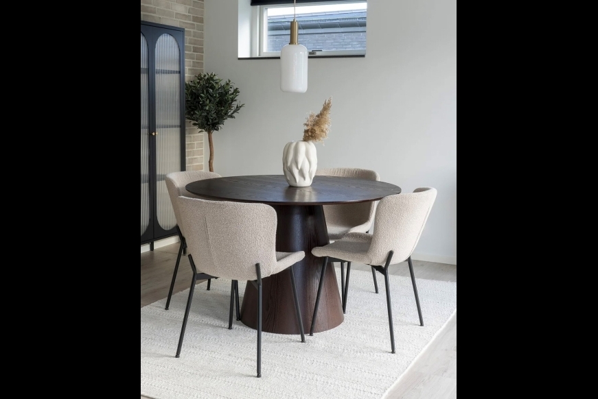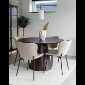 Mål: Bord Ø: 120 x H: 76 cm / Stole B: 52 x D: 61 x H: 80 / siddehøjde 49 cm