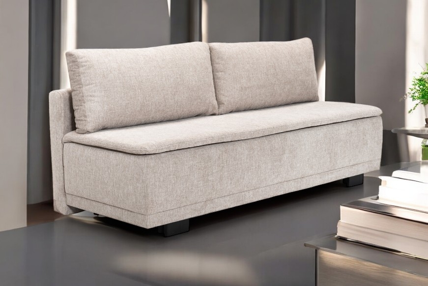Bemærk, at sovesofaen har et indbygget magasin under madrassen.