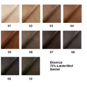 Essenza er et kraftig læder/tekstil økoprodukt, som består af 70% genanvendt læder. Effekten af læder kombineret med tekstilernes åndbarhed gør at betrækket er temperaturneutralt, hvilket betyder at det ikke føles lige så koldt om vinteren og varmt om sommeren, som man ofte oplever læder.