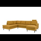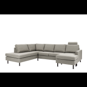 Info: Vita U-sofa m. chaiselong og openend, højrevendt.