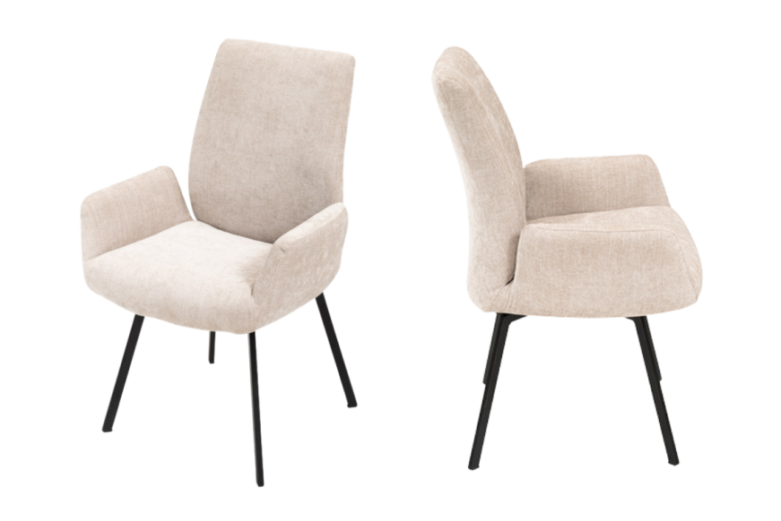Spisestolesæt på 2 stk. i stof m. vip i ryggen og drej.