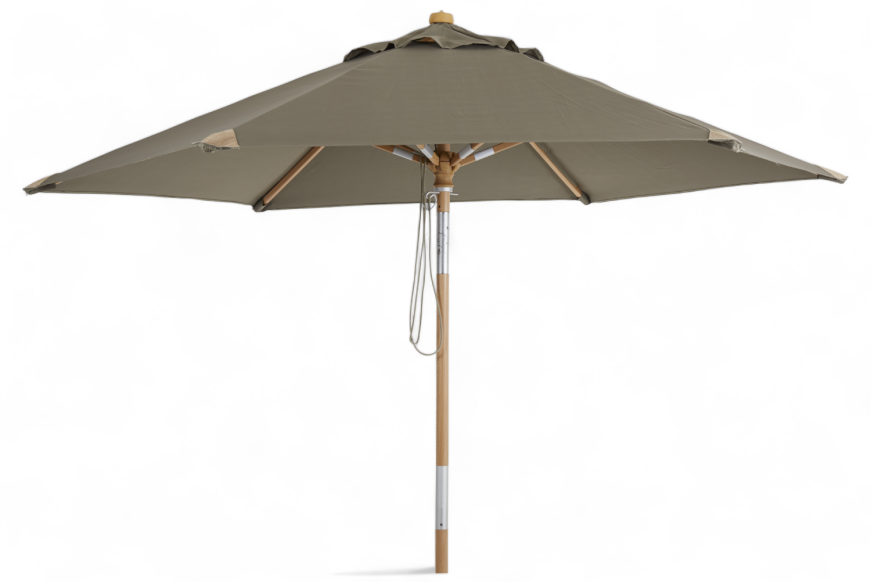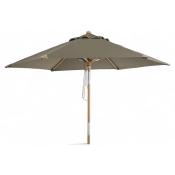 Trieste er en 2,5 m parasol af træ (bøg) med matlakeret overflade. 2-delt stang med push-tilt.