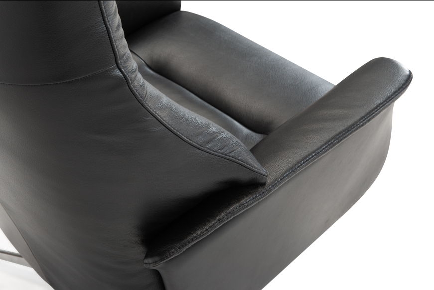 Stolen er betrukket med lækker Soleda læder over alt. Med et let pres bagud, kommer fodskamlen frem.