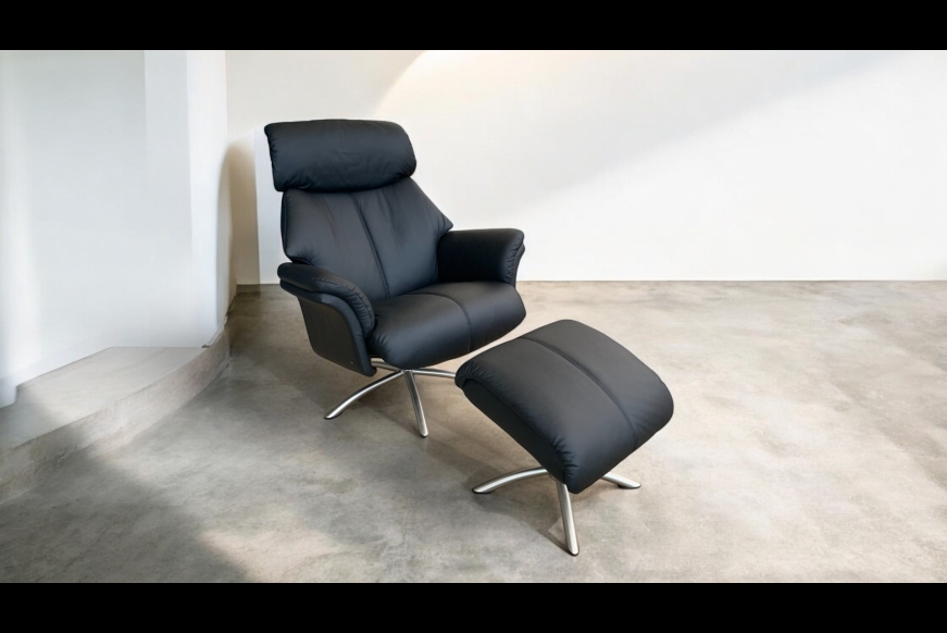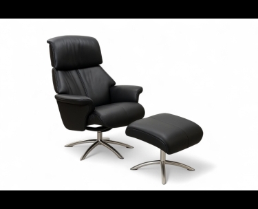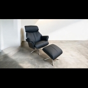 Cherry er en lænestol med justerbar nakkeregulering og tilhørende fodskammel fra finske BD Møbler.