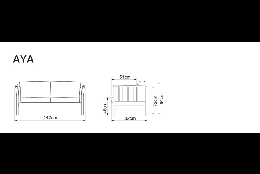 Info: Aya 2 personers sofa.Mål: 142 x 80 x 82 Cm