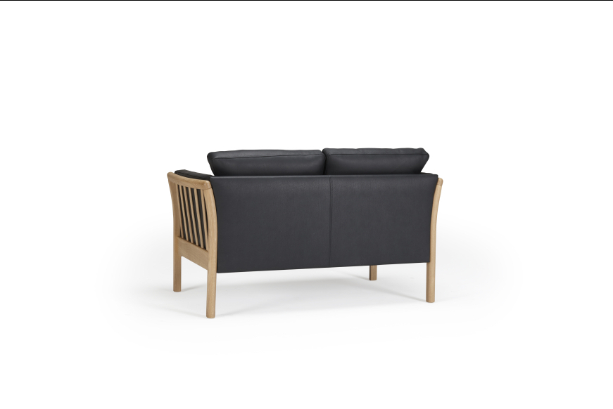Klassisk tremmesofa i eg med læder. Fås med bøge stel og flere forskellige af egestel.