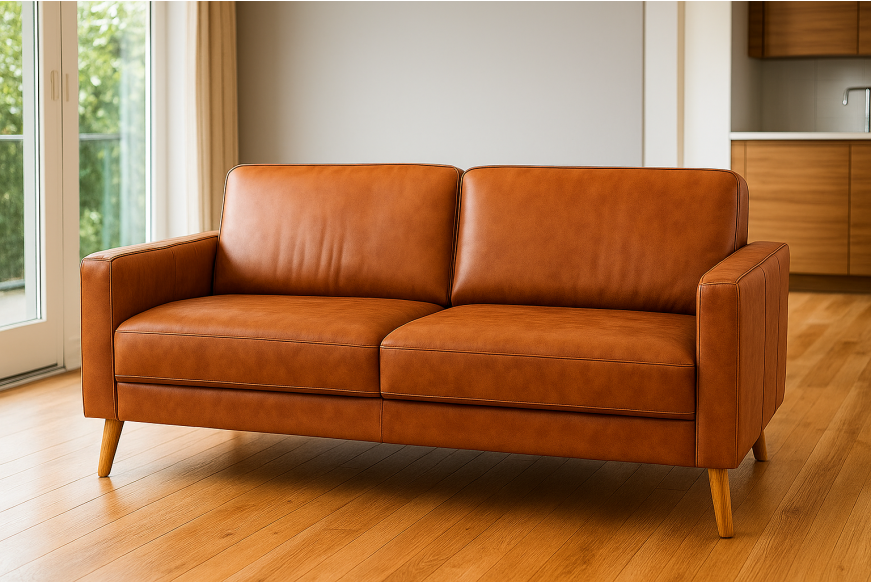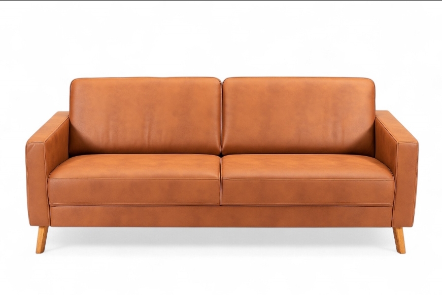 3 pers. sofa med 2 sæder. Kraftig stof. Fås også læder.