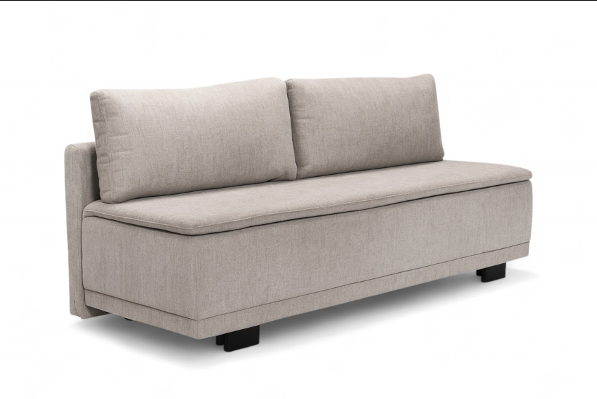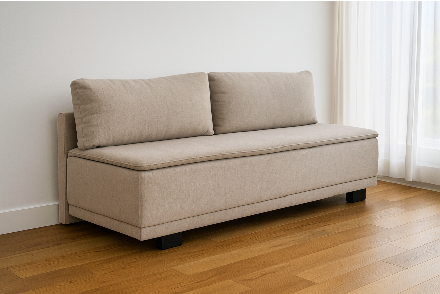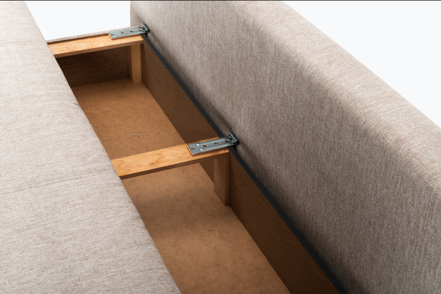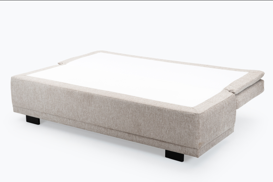 Bemærk, at sovesofaen har et indbygget magasin under madrassen.