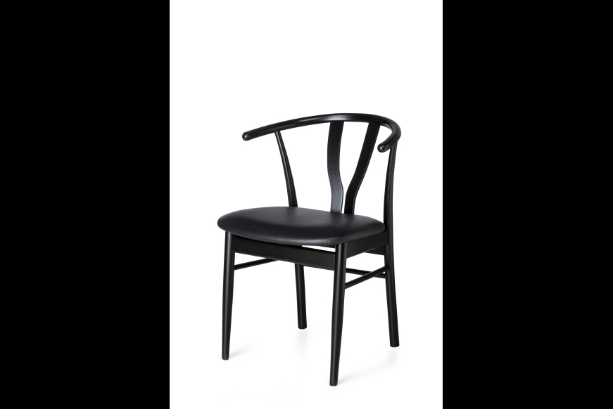 Elegant spisestuestol i massiv bøg. I sort malet./ lakeret.