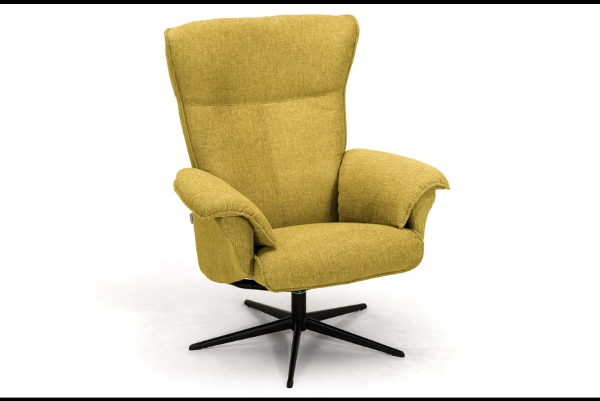 Drejestol og skammel monteret med stof, fås også i læder.