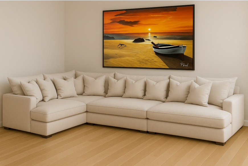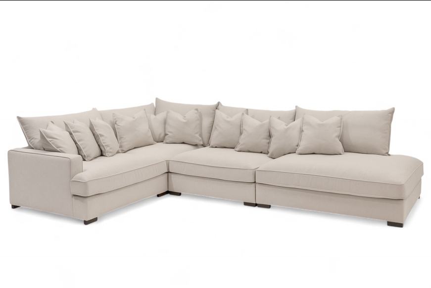 Stor moderne flydersofa / hjørnesofa, med open end.