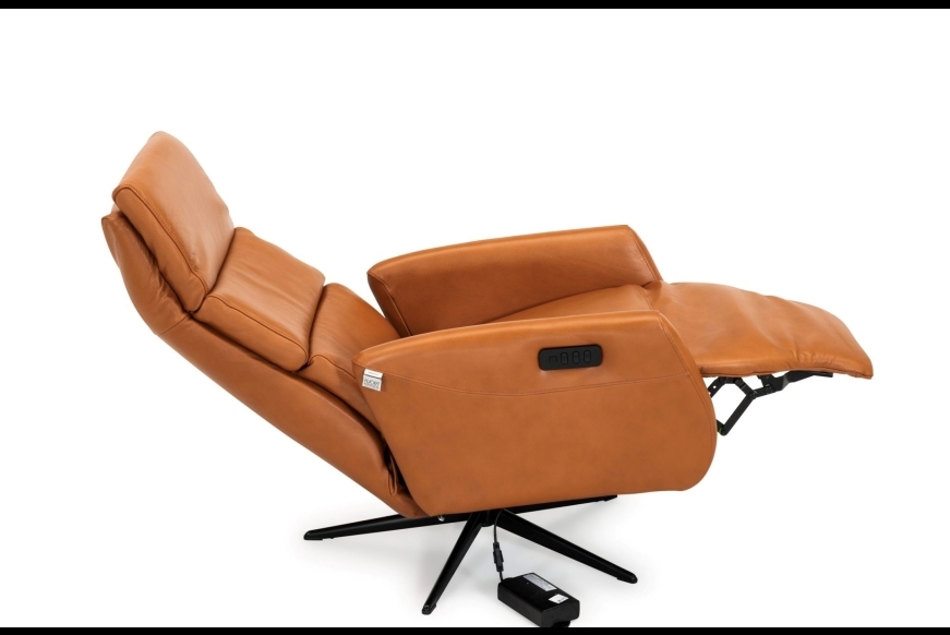 Drejestol i semianilin læder med integreret EL skammel / ryg / nakke. Fås også i stof. Mulighed for batteri.