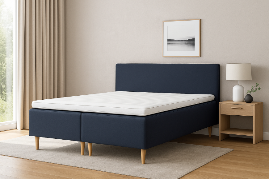 Kvalitets boxmadras med 7 zonet posefjedre i 2 hårdhedsvarianter. Tilhørende komfortabel topmadras i åndbart Talalay naturlatex.