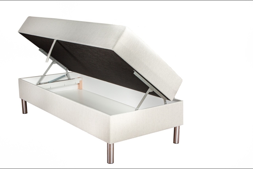 Ved størrelserne 120 x 200 og 140 x 200, åbnes opbevaringen fra bunden og ikke fra siden.
