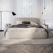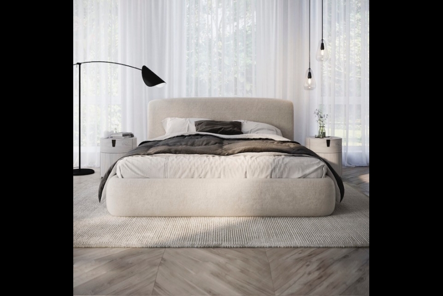 Den overpolsteret senge ramme, incl. flot gavl, giver soveværelset et elegant og roligt udtryk.