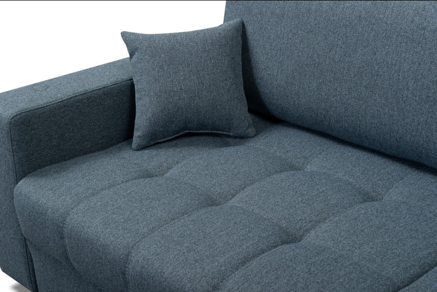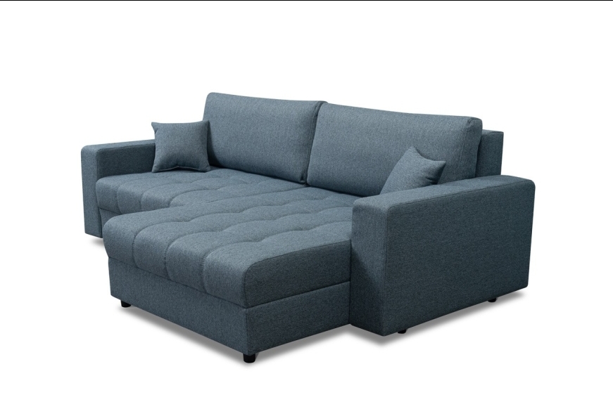 Komfortabel og smart chaiselong sovesofa polstret med polyether skum i sædet og skumgranulat i rygpuderne. Med opbevaring i magasin.