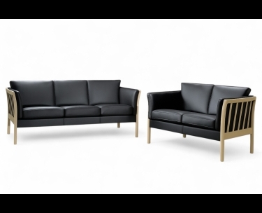 Klassisk tremmestol i bøg/sæbe - Sort læder Stærk pris på Iowa læder