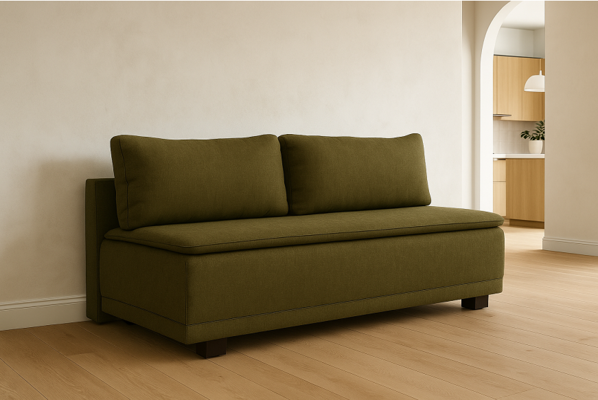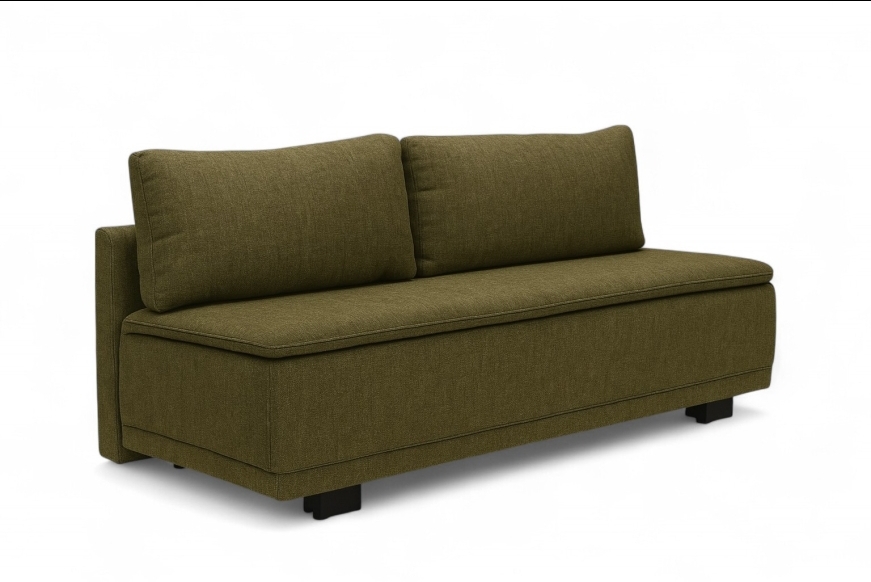 Bemærk, at sovesofaen har et indbygget magasin under madrassen.