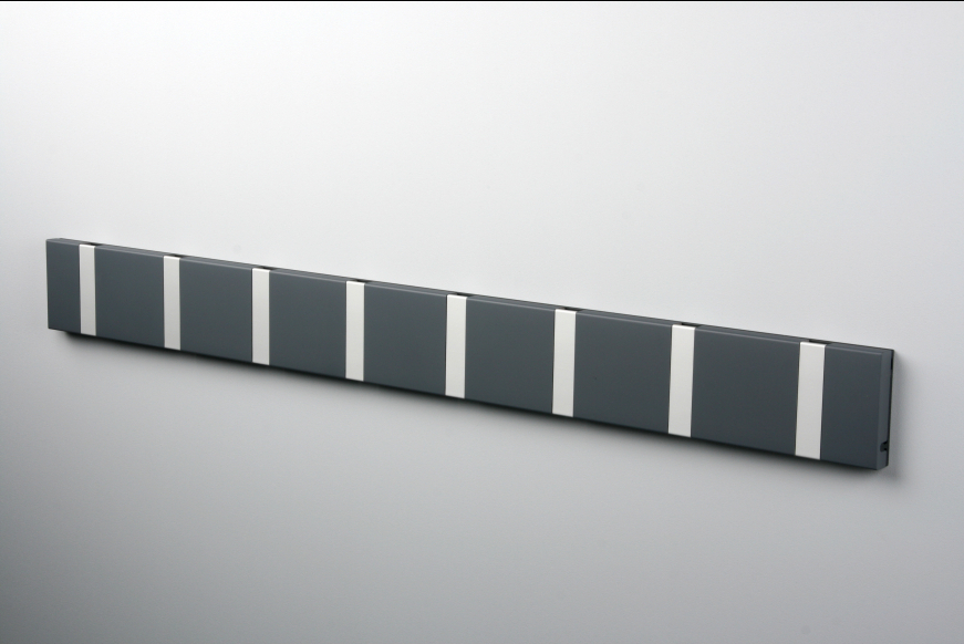 Elegant og robust knagerække med 8 knager. Vælg mellem flere trætyper og bredt udvalg af farver. Mål: L: 79,2 cm, H: 7,9 cm, D: 1,8 cm.