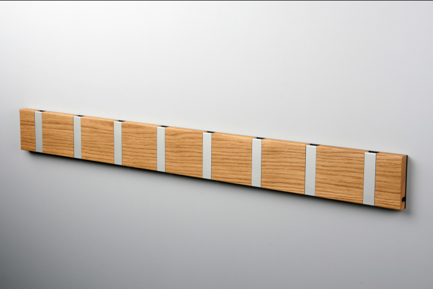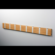 Elegant og robust knagerække med 8 knager. Vælg mellem flere trætyper og bredt udvalg af farver. Mål: L: 79,2 cm, H: 7,9 cm, D: 1,8 cm.