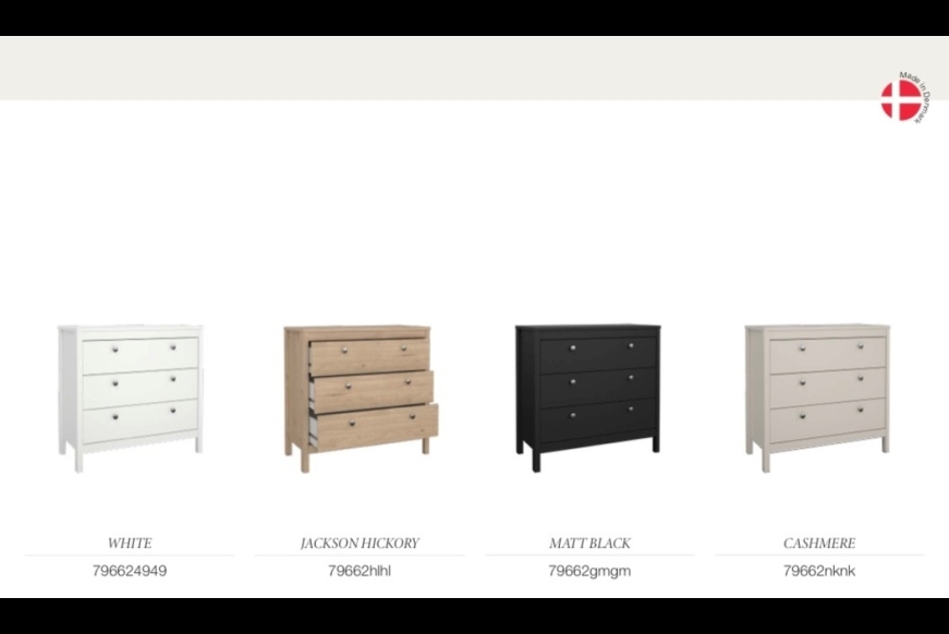 MADRID Er en serie af møbler fra danske Tvilum, med flere spændende produkter. Du finder kommoder, skoskab, natbord og skrivebord. .