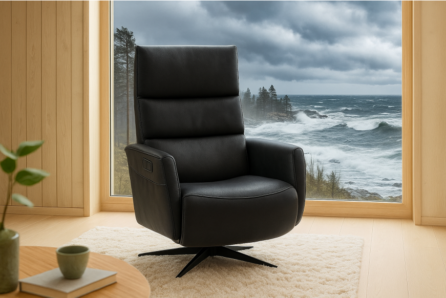 Storm 8041 er den perfekte kombination af luksus og funktionalitet med denne lænestol i kraftigt, åndbart semianilin læder. Den klasiske sorte læder giver et eksklusivt og tidløst udtryk, mens den sorte metalsokkel understreger det moderne design. Med 3 motorer kan både fodskammel og ryglæn justeres individuelt, så du altid finder den optimale position til afslapning, læsning eller tv-hygge. Stolens fremragende komfort sikrer, at du får en unik siddeoplevelse, der både er støttende og indbydende. Skabt til at blive hjemmets naturlige samlingspunkt, hvor stil møder velvære – en lænestol, der løfter enhver stue med elegance og funktionalitet.