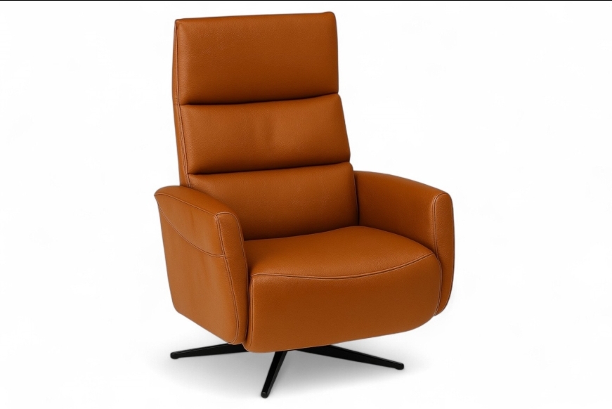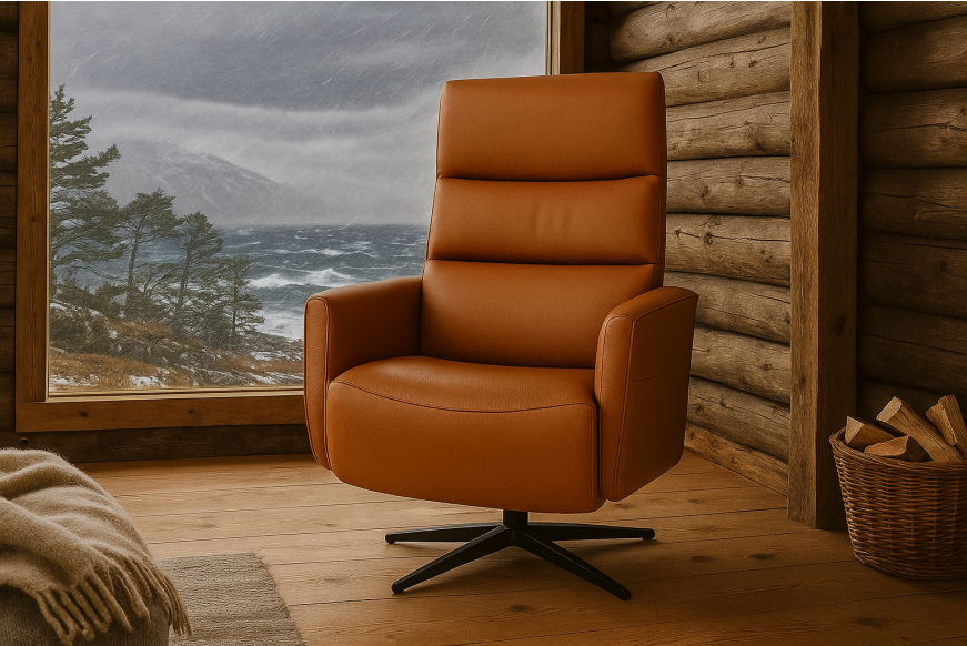 Storm 8041 er den perfekte kombination af luksus og funktionalitet med denne lænestol i kraftigt, åndbart semianilin læder. Den elegante cognac farve giver et eksklusivt og tidløst udtryk, mens den sorte metalsokkel understreger det moderne design. Med manuel regulering kan både fodskammel og ryglæn justeres individuelt, så du altid finder den optimale position til afslapning, læsning eller tv-hygge. Stolens fremragende komfort sikrer, at du får en unik siddeoplevelse, der både er støttende og indbydende. Skabt til at blive hjemmets naturlige samlingspunkt, hvor stil møder velvære – en lænestol, der løfter enhver stue med elegance og funktionalitet.