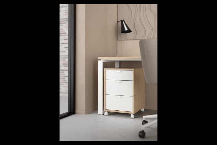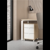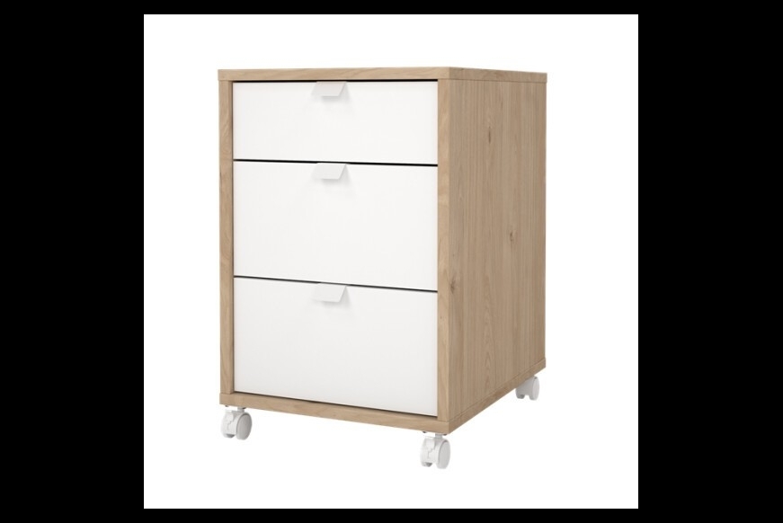 Sign skuffesektion. Anvendes under skrivebordet, eller kan også fint fungere alene. Kassetten består af 2 store og 1 mindre skuffe. Elegant design, kan fin anvendes til kontorbrug, børneværelse eller bare en enkel reol i stuen. Nemt at flytte runde med, da der er monteret hjul på den.