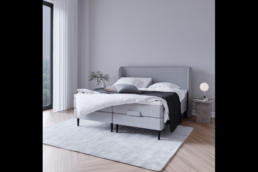 Elevationssengen giver en fleksibel liggekomfort, da madrassen hviler på hele 42 lameller luksus bund med nakkebøj funktion. Lamellerne kan justeres efter behov, sådan at sengen kan tilpasses enhver. Madrassen er med en ekstra høj 21cm høj posefjedre: Madrassen er nem at vende, hvilket betyder at levetiden er væsentligt længere. Der er hele 7-zoner, incl. skulder zone.