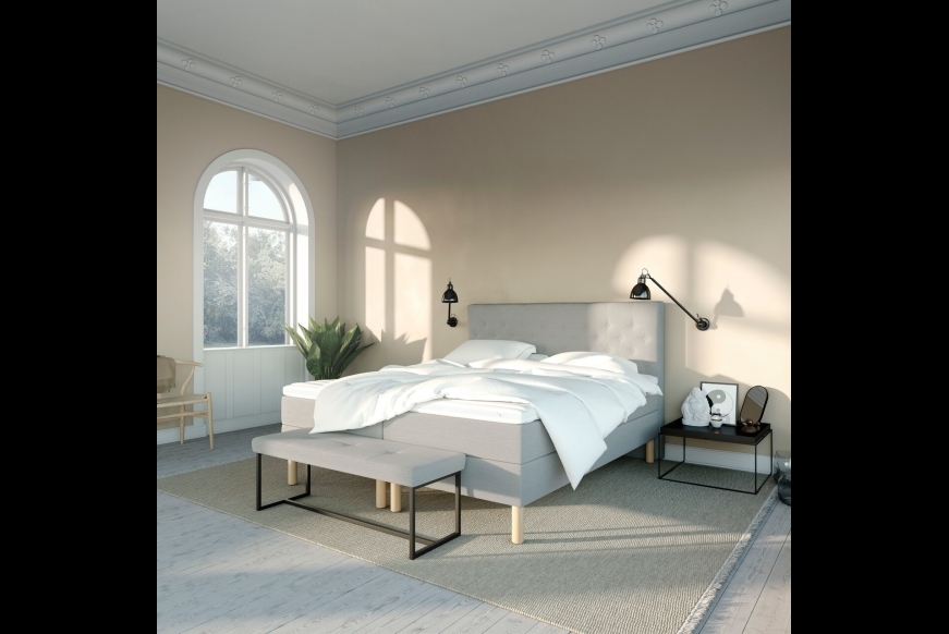 Kollektionen er udviklet sammen med de dygtigste designere og produktudviklere, som har skabt en serie af innovative senge og madrasser, som på bedste vis forener form og funktion. Vælg frit imellem betræk og ben uden merpris.