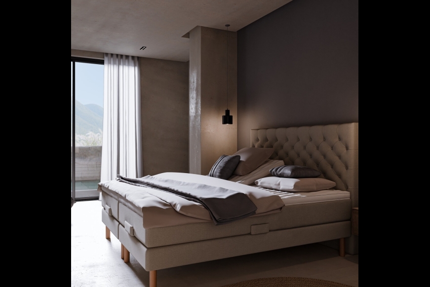 Elevationssengen giver en fleksibel liggekomfort, da madrassen hviler på hele 42 lameller bund. Madrassen er med en ekstra høj 21cm høj posefjedre: Madrassen er nem at vende, hvilket betyder at levetiden er væsentligt længere. Der er hele 7-zoner, incl. skulder zone.
