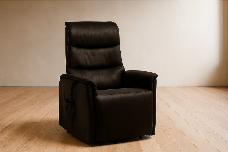 Powerful og komfortabel løftestol med ekstra god plads. Monteret med praktisk mikro tekstil. Løfteevne 150 kg.