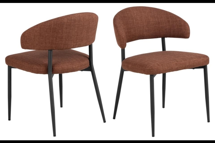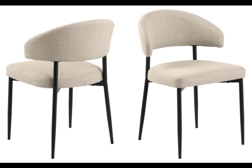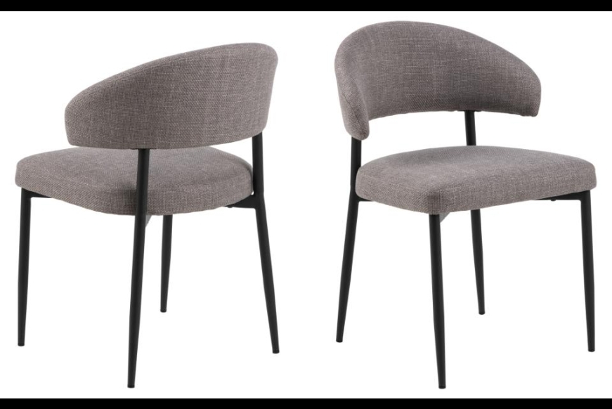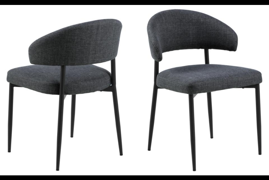 Lina er en komfortabel spisebordsstol. Stolen er komfortabel med rund ryg. Stolen er betrukket med kraftig struktur stof. Stellet er ru sort pulverlakeret metal.   Passer perfekt til plankebordet, et runde træbord eller som en lille let hverdags stol.