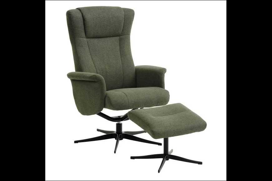 Drejestol incl. skammel i grøn stof. Fås i 3 farver.