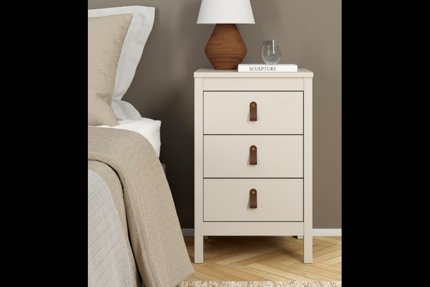Sengebord i beige med 3 skuffer. Fås i 4 farver og flere str.