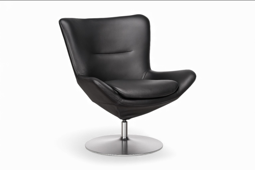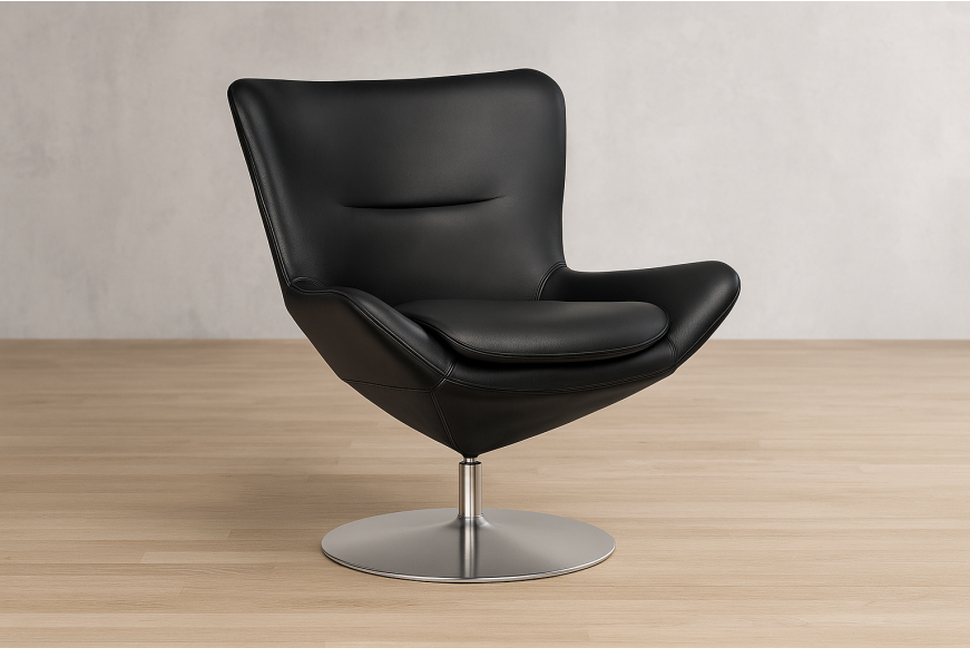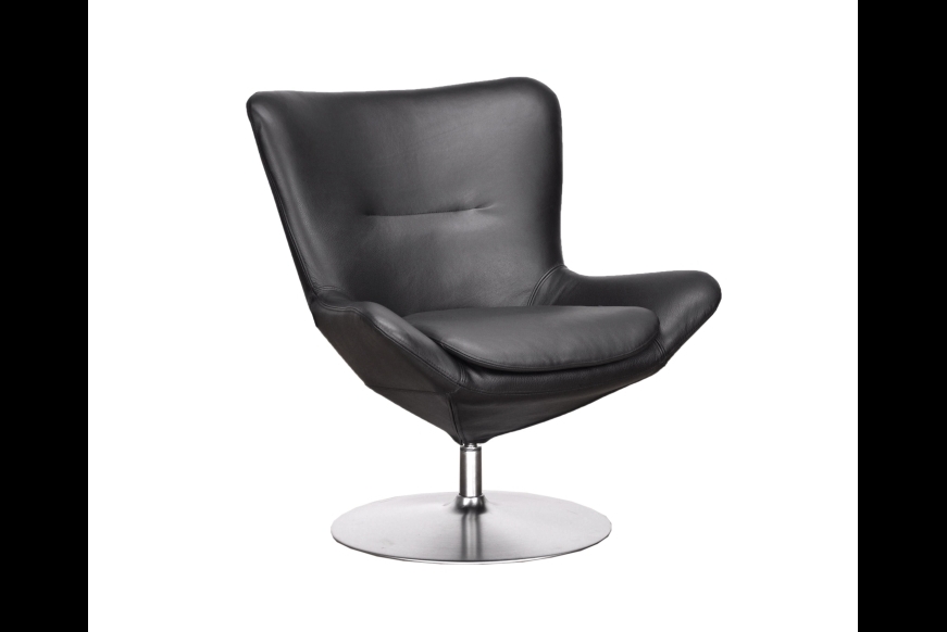 Mexico lænestol er et stilfuldt valg til dig, der ønsker en moderne lænestol i høj kvalitet. Den er betrukket med eksklusivt sort semianilin læder, som både er blødt og slidstærkt. Den komfortable koldskum sikrer optimal støtte, mens den elegante trompet sokkel i krom giver et let og svævende udtryk. Mexico fås i mange farver, så du kan matche din personlige stil. Tilkøb en matchende skammel for ekstra komfort. Perfekt til stue, lounge eller kontor.