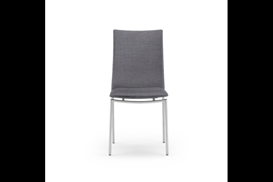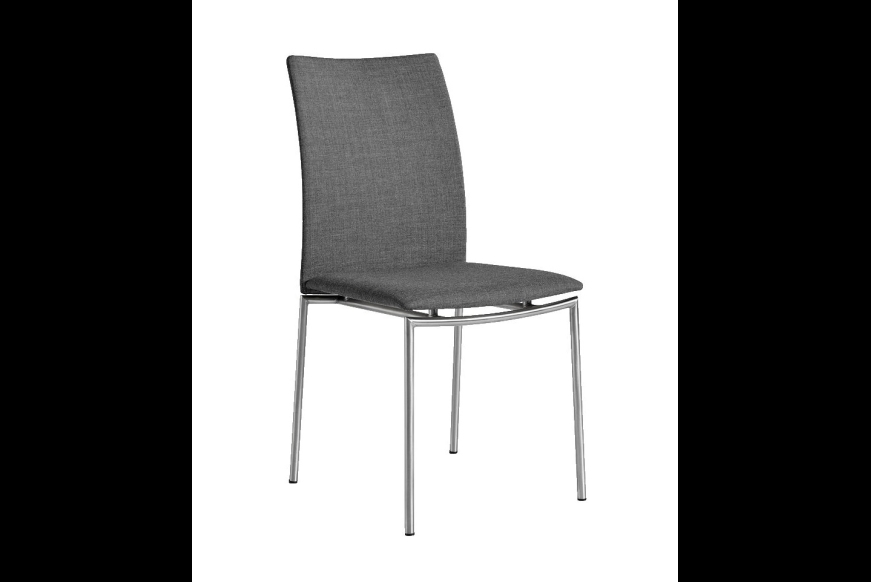 Flot dansk produceret spisestol med stel i børstet stål. Sædet er stof grp. 2.