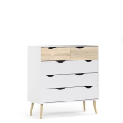Kommode i hvid melamin med 3 store og 2 små skuffer.