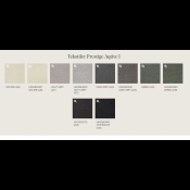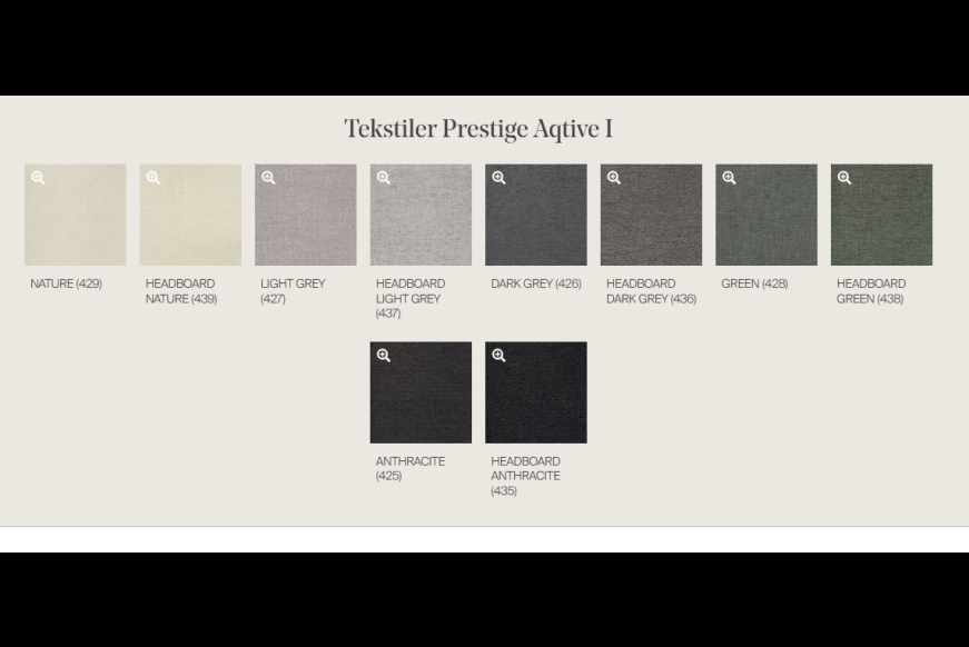 Jensen Prestige har et moderne design, og leveres i eksklusive møbeltekstiler fra Beaulieu i farverne natur, beige, dark blue, grey og anthracite. Der findes også matchende designtekstiler til hovedgærdet. Jensen Prestige har dobbelte sømme med et diskret broderet logo på den nederste kant af sengen.