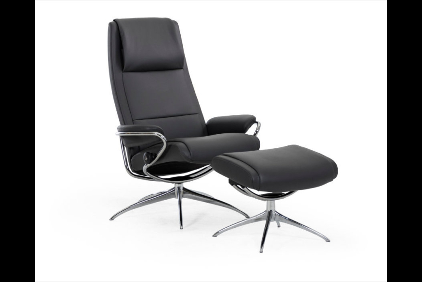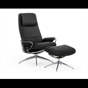 Stressless Paris Høj er en flot og stilren lænestol med flytbar nakkestøtte og super siddekomfort. Stolen leveres med stjernesokkel i krom eller sort og har et let udtryk.