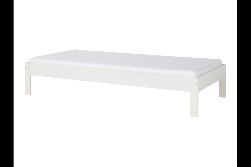Hvid børnebriks. Mål: 70 x 160 cm Kan også fås i 90 x 200 cm.
