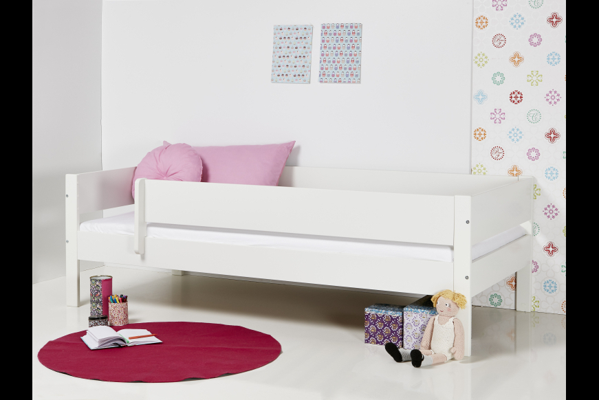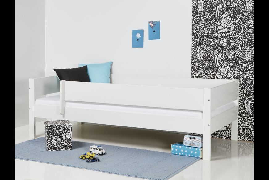 "Mini Max" made in Denmark. Sengen er naturligvis godkendt af Dansk Teknologisk institut. Der er anvendt miljøvenlig og uskadelig hvid maling. Lavet af 19 mm malet MDF.
