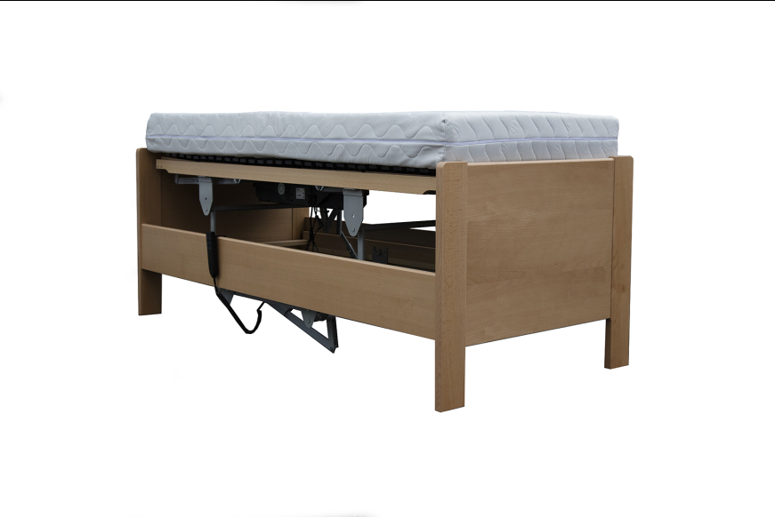 Plejebunden kan køres trinløst op, så man får madrassen i den højde, der passer til man nemt kommer ud af sengen, og hvis der er behov, kan den køres helt op, så eksempelvis hjemmeplejen eller andre, har den rigtige arbejdsstilling og højde.