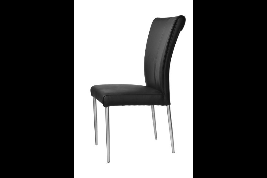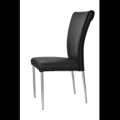 Med nozag fjedre i sædet. Stolen er med stålstel samt læder på sæde og ryg.