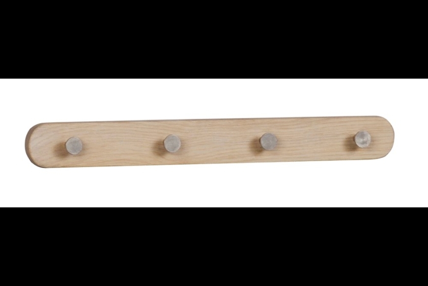 Knagerække i eg hvid olie med 4 knager. Fås også i hvid, sort el. almindige eg olie.