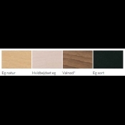 Stellet kan bestilles i eg mat lak, whitewash, valnød bejds og sort. Stolen kan fås i mange farver både i læder samt i stof.